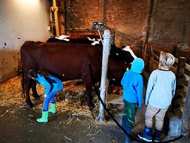 Erlebt den spannenden Alltag auf einem Bauernhof fünf Tage lang hautnah. Auf dem Schulbauernhof in Hevensen werdet ihr verschiedene Haustiere, wie Kühe, Schweine, Hühner und Schafe füttern und versorgen. Unter engagierter Betreuung könnt ihr frisch gemolkene Milch u.a. zu Käse verarbeiten, aus dem Bauerngarten frisches Gemüse ernten, Wolle filzen oder spinnen und noch vieles mehr…